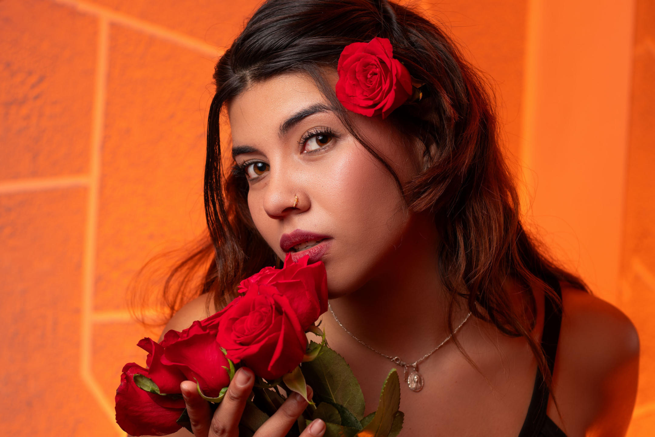 She is a 21-year-old woman, with a smile that lights up anywhere she goes. Her hair, long and wavy, is a dark brown tone that shines like chocolate in the sun. His eyes are large and expressive, an emerald green color that captures everyone's attention. She always dresses casually but with style, combining tight jeans with blouses in soft colors that highlight her vibrant personality. She is outgoing and her laugh is contagious, making people around her feel energetic and happy. She is passionate about music; You will often see her with headphones on, enjoying her favorite tunes while she immerses herself in her thoughts. She loves discovering new artists and attending concerts, where she feels more alive than ever. She is also an avid reader; she always carries a book in her bag, ready to get lost in a good story any free moment she has. From fantasy novels to essays on philosophy, his curiosity knows no bounds. Her personality is warm and welcoming, making her a loyal and trustworthy friend. She is always willing to listen and offer support to those who need it. Additionally, she has a sharp sense of humor and enjoys deep conversations, which makes her even more interesting. His love for life is reflected in his enthusiasm for learning new things and his desire to travel and learn about different cultures. In short, she is a woman who leaves her mark on those who know her, not only because of her appearance, but because of her genuine kindness and her way of seeing the world.